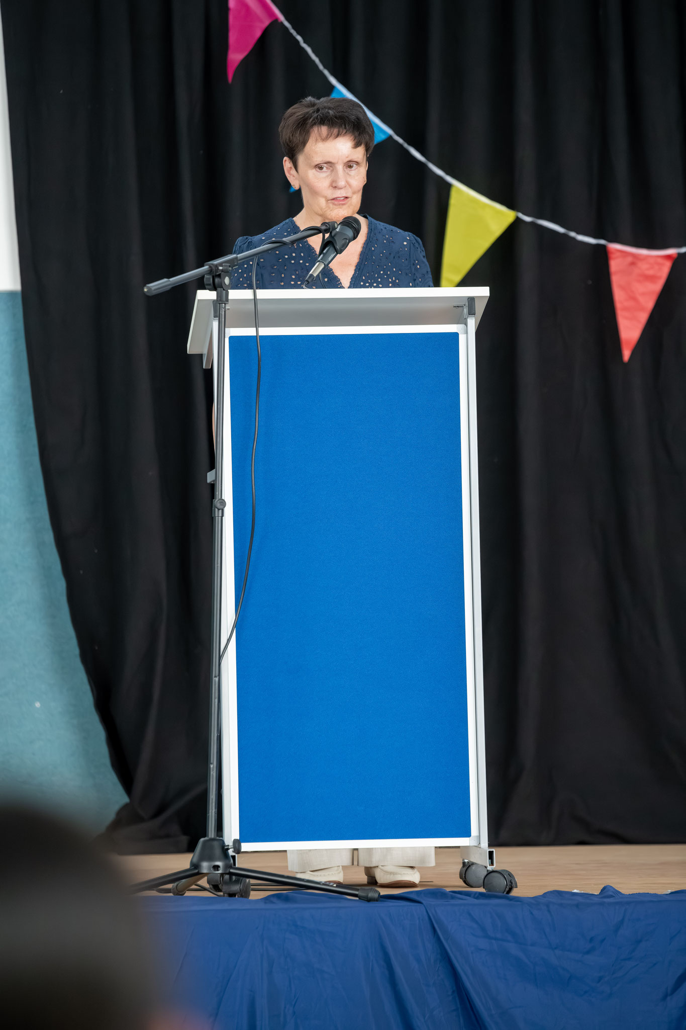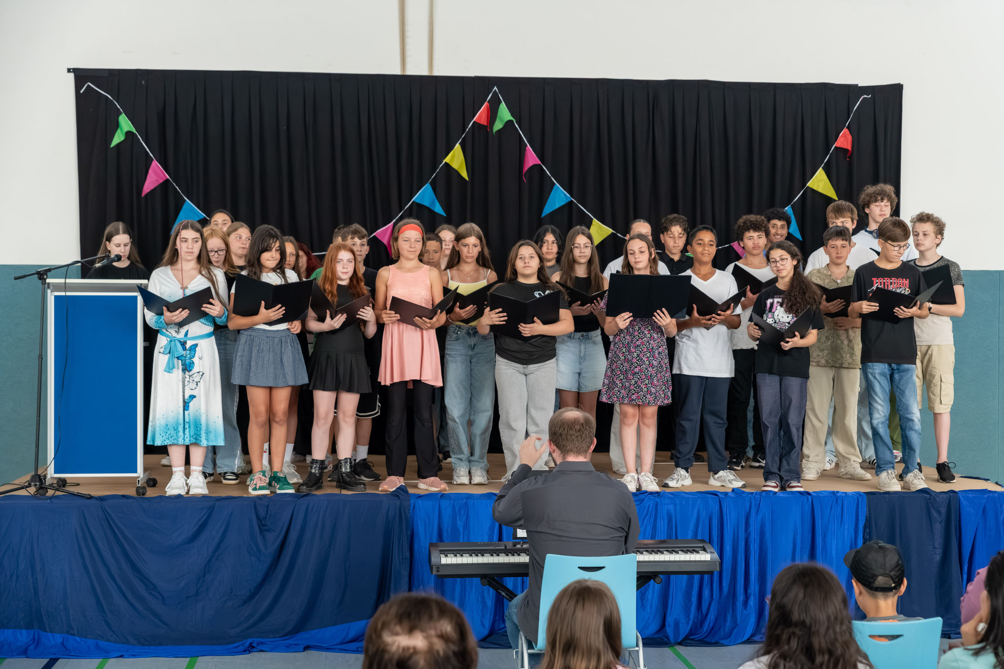 Nach einem musikalischen Auftritt des Schulchores unter der Leitung von Herrn Martiné und Frau Bolduan hieß die Schulleiterin Frau Aden die neuen Mitglieder der Schulgemeinde herzlich willkommen.