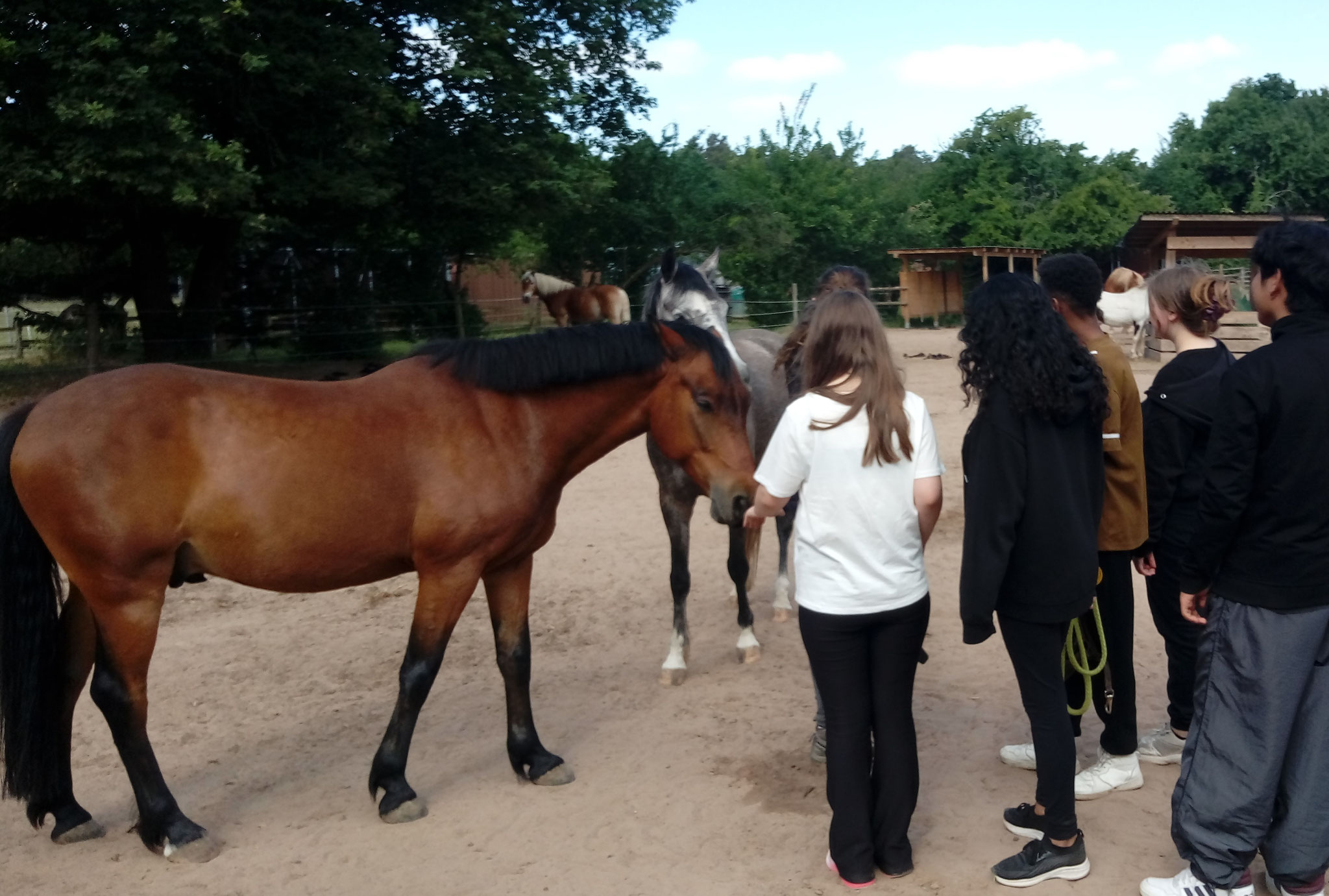 ... der Erde auf dem Rücken geduldiger Schulpferde. In Kooperation mit dem Reitstall Dreieichenhain bieten wir seit diesem Schuljahr im Rahmen des Ganztages eine Reit-AG an. Alle Lernenden ab Jahrgang 7 können sich bei Frau Berndt (Ganztagskoordinatorin) melden. Der Reitstall stellt zudem die Ausrüstung zur Verfügung, während die AES die Kosten übernimmt. Durch den engen Kontakt und das Vertrauen zwischen Pferd und Reiter werden die motorischen, sozialen, emotionalen und kognitiven...